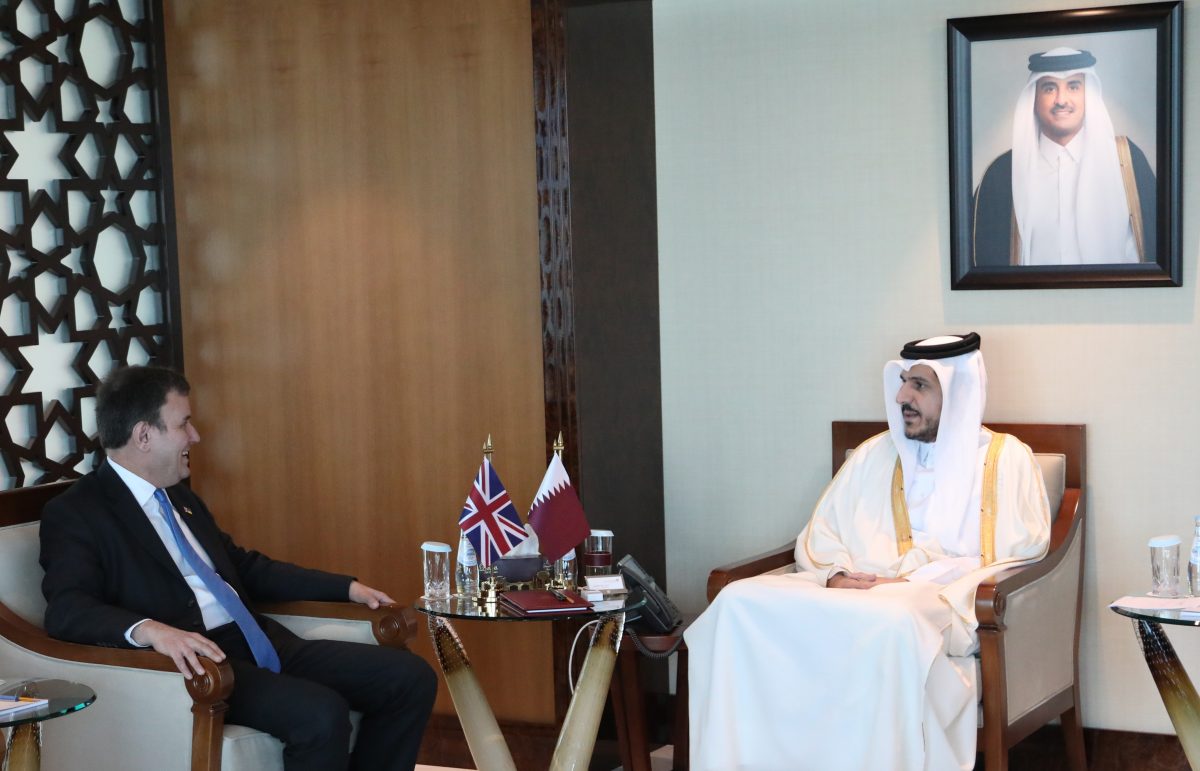 H.E. Sheikh Mohammed bin Hamad bin Qassim Al-Thani, Minister of Commerce and Industry, met today with H.E. Mr. Greg Hands, United Kingdom Minister of State for Trade Policy in the Department for Business and Trade, who is currently visiting the country.