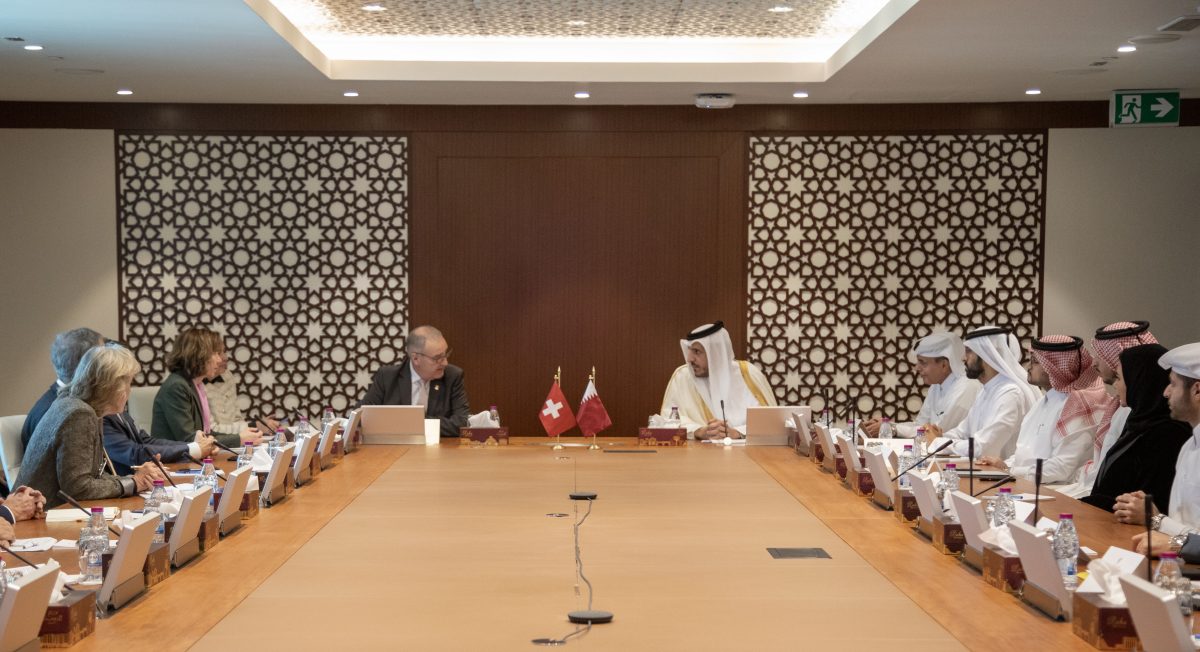 Swiss investors and companies were encouraged to leverage the favourable economic and investment environment provided by Qatar for foreign investors. They were invited to establish new partnerships in crucial sectors, including pharmaceutical industries, food manufacturing, innovation, technology, and other fields to address the requirements of the Qatari local market. This will enable them to expand their reach towards new markets in the region and the world.
