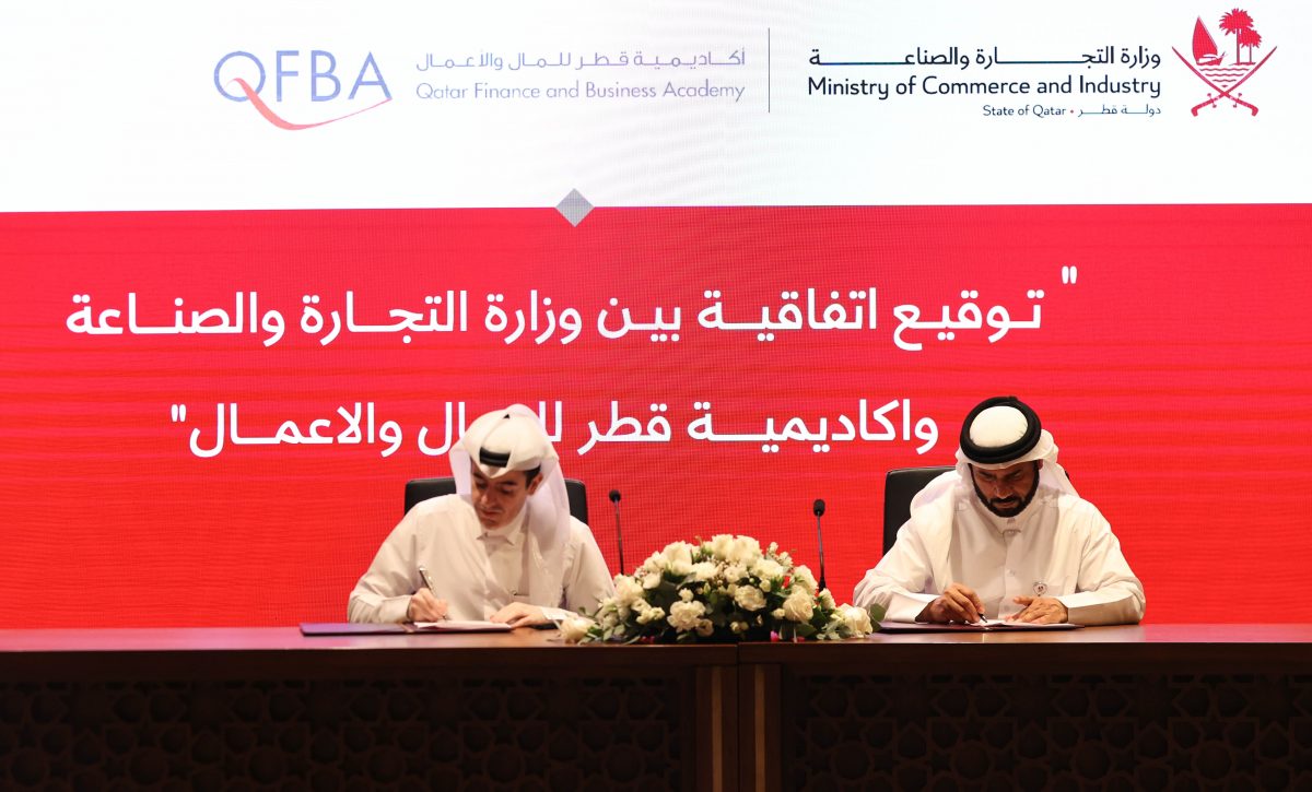 The Ministry of Commerce and Industry signed an agreement with the Qatar Finance and Business Academy to coordinate and strengthen collaborative efforts in the field of training and professional development for the Ministry’s employees, aiming at nurturing a skilled workforce in its relevant sector.
